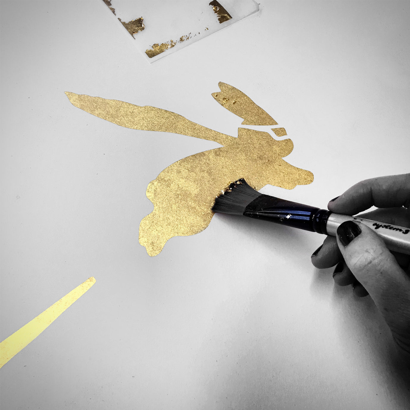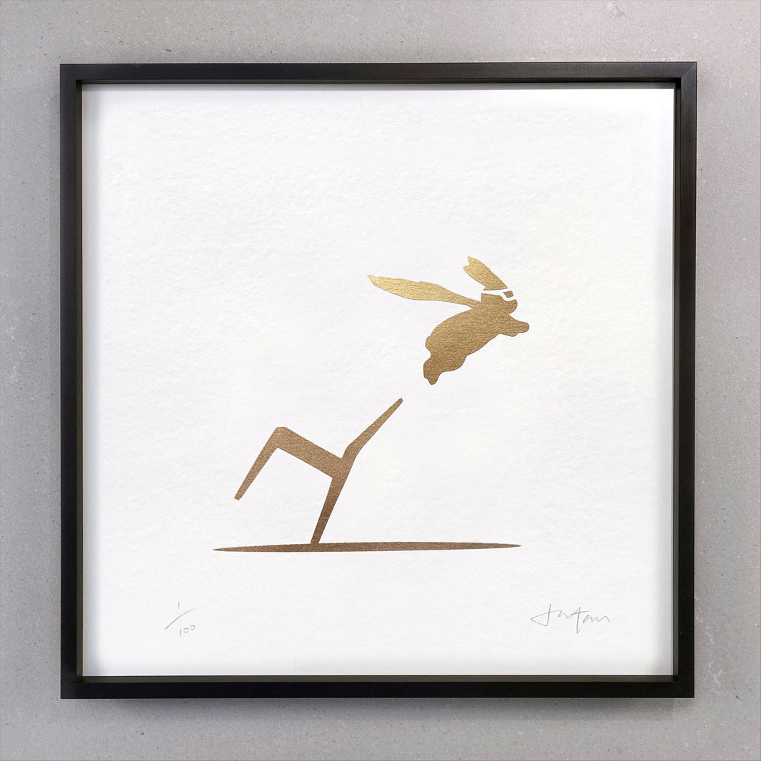 All HAM artwork is screen printed by hand. Our brilliant print specialist Sam, works meticulously with each design – first transferring the image to silk screen to create the stencil and then pulling each print individually by pushing ink through the screen's mesh using a squeegee. For our gold prints, after printing the black, Sam repeats the printing process in gold ink where needed and then again with a special glue before applying the 24 carat gold leaf by hand. Once dry Jo checks, signs and dates before carefully packaging up each Rabbit ready for its new home.